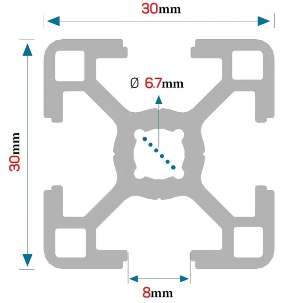 PROFIL KONSTRUKCYJNY ALUMINIOWY 30x30 [8] R 200cm + Cięcie na wymiar
